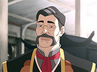 As the Fire Ferrets' sponsor, he and his daughter attended the Pro-bending Tournament final, which, along with the Equalists' ambush, they spectated from a private balcony.[13] After the Equalists attacked the Pro-bending Arena, Hiroshi was asked to come to police headquarters to be questioned about what he witnessed during the attack. When he was finished, Hiroshi was led out by Tenzin and Chief Lin Beifong and was told to come back if he remembered anything else, to which he accepted, demanding that the Equalists pay for their crimes.[5]